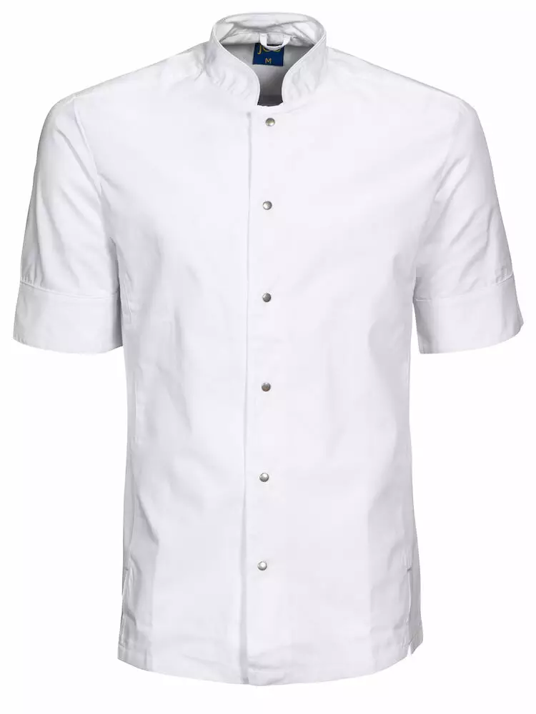 Well-fitting stylish chef jacket. Wash at 85 degrees.