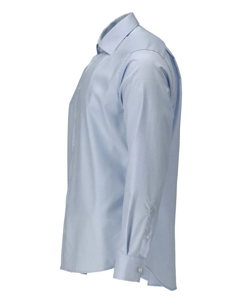 Moderni istuvuus. Lisäpituus vartalossa ja hihoissa. Erityisen pitkäkuituista puuvillaa. Cut away -kaulus. Jäykistetty kaulus. Nappikiinnitys. Säädettävät hihansuut Selässä laskos.