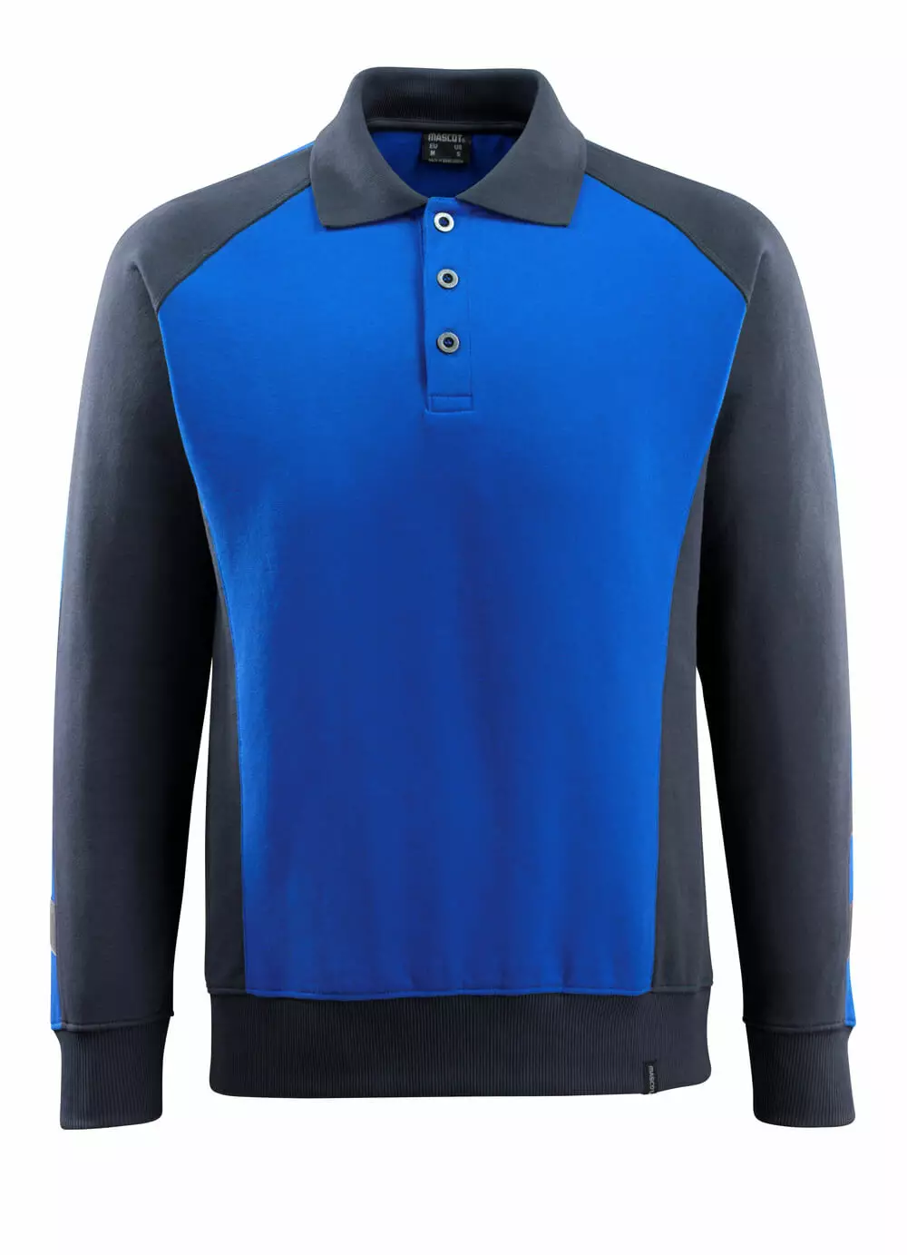 Premium Performance. Two-tone. Strong material. Combed cotton. Brushed inside. Modern fit. Knitted collar. Button fastening. Binding at the neck. Reinforcement at the neck. Ribbed hem and cuffs.