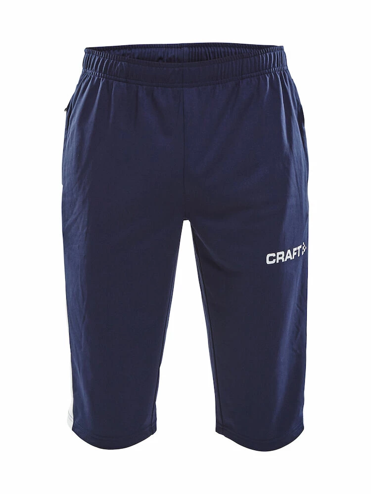 Elastic knee-length training and jogging pants. The technical material efficiently wicks moisture away, ensuring optimal performance. Zippered side pockets. Elastic waistband with drawstring.