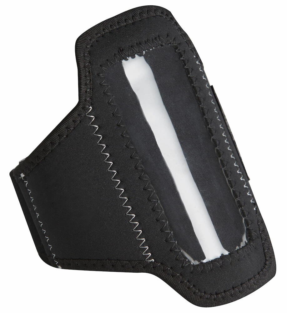 A protective case for media devices, featuring a transparent plastic film suitable for touch screens. Velcro closure. L: 40 cm, W: 15 cm
