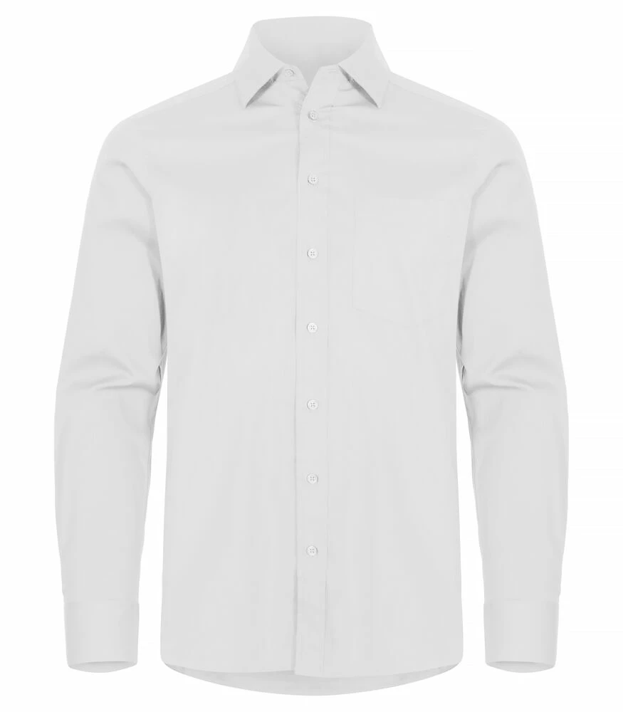 Pitkähihainen paita normaalimitoituksella. Hihoissa säädettävät napit ja miesten mallissa on yksi rintatasku. Selässä laskokset.