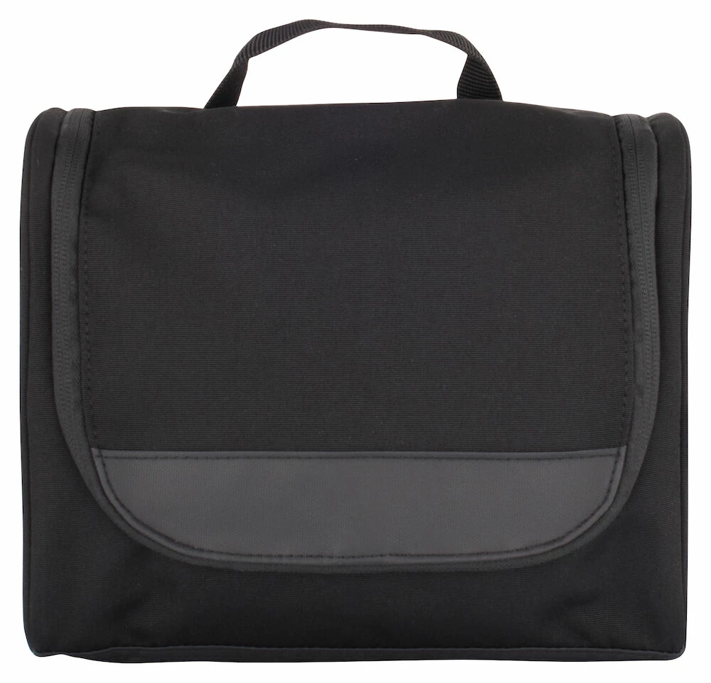 Modern toilet bag with multiple regular pockets and mesh pockets. A large zippered pocket on the back allows for quick access to items. Carry handle and hook for hanging the open bag. Dimensions and... Read more