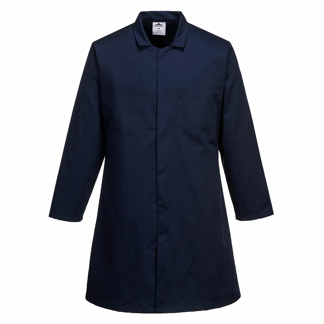 Food industry jacket with one chest pocket for storage. Made from highly durable Kingsmill polyester and cotton blended fabric.