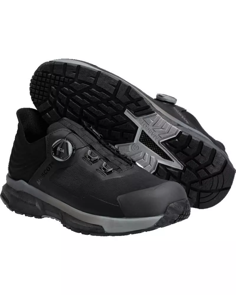 The shoe flexes comfortably with the movement of the foot. The upper materials are durable fabric. For easy on and off, it features the BOA® Fit System, which consists of a disc, metal wire, and guides. The heel is lined on the inside with memory foam. Composite toe cap protection. MASCOLAYER® textile nail protection. Shock-absorbing, soft, and flexible insole. The removable insoles are easily detachable. The midsole is made of eTPU and EVA. The carbon plate in the midsole enhances energy return. TPU heel reinforcement. TPU toe reinforcement. The rubber sole features a 3D printed pattern. The sole is oil and gasoline resistant. ESD approved to EN IEC 61340-4-3: 2018, EN 61340-5-1: 2016.