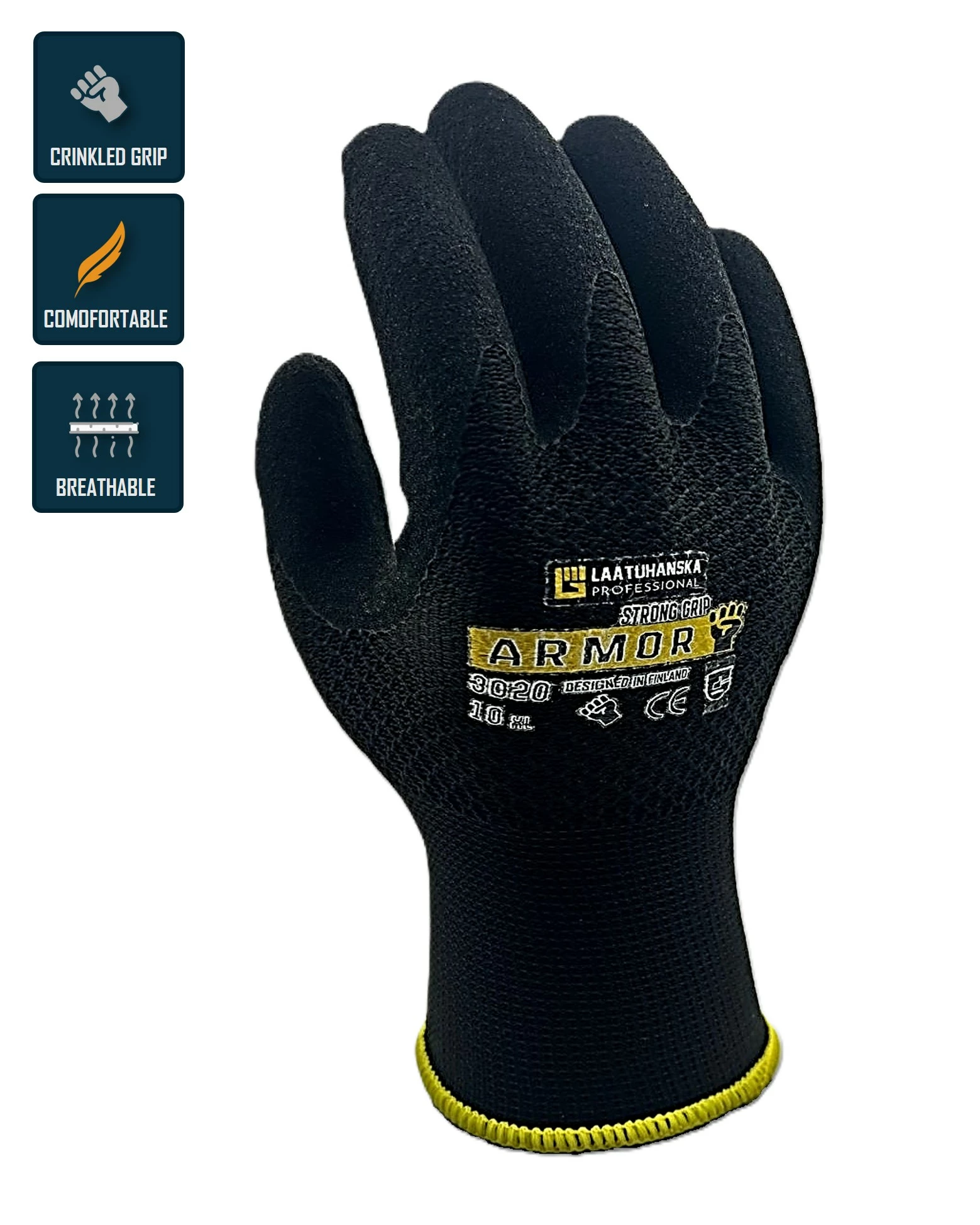Premium-tason ARMOR-hanska on erittäin pehmeä ja siinä on tyylikäs musta väri sekä ananas-kuvioitu kuori. Uusinta microfoam sandy -teknologiaa hyödyntävä hanska tarjoaa korkeamman mukavuustason ja näyttävän ulkonäön sekä erinomaisen pidon sekä märillä että kuivilla pinnoilla.• Microfoamsandy pinnoitettu kammen on vedenpitava