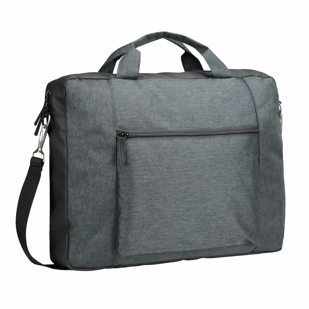 Tyylikäs tietokonelaukku, jossa pehmustettu päälokero ja etutasku. Laukun yläosa, pohja ja sivut on PU-pinnoitettuja, jotta laukku kestää käytössä pidempään. Siistit kantokahvat ja olkahihna jossa on mattahopeiset klipsit. SBS-vetoketjut. Mitat & tilavuus: 39x31x9cm - 8 L