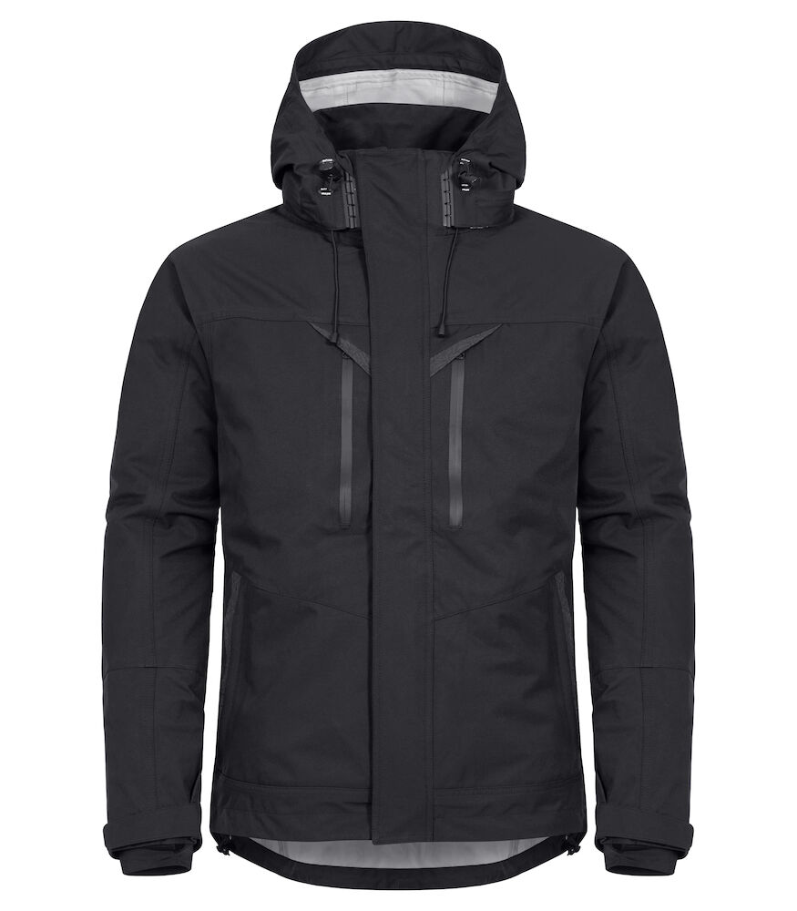 Tuulen- ja vedenpitävä takki, jossa irrotettava sisätakki. Päätakissa on teipatut saumat, kaksisuuntainen vetoketju edessä ulkoisella tuuliläpällä ja painonappikiinnitys. Pystysuuntaiset rintataskut vedenpitävällä vetoketjulla, vasemmassa silmukka henkilökortille. Tilavat sivutaskut. Irrotettava, kiristysnauhalla säädettävä huppu. Kiristysnauhalla säädettävä helma. Säädettävät hihansuut tarranauhalla, myös ylimääräiset sisähihansuut peukalonrei'illä.