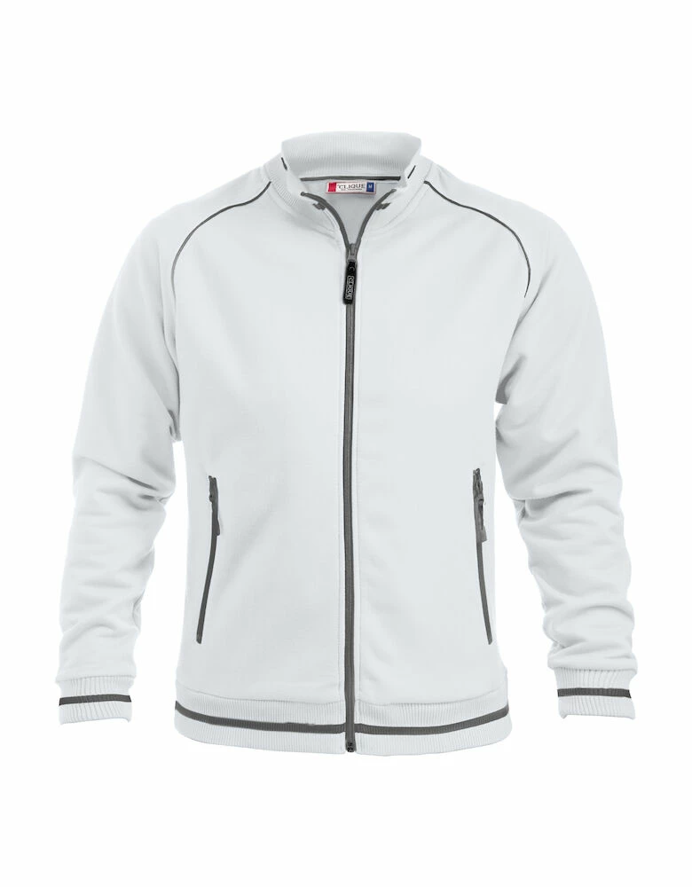 Sporttinen verkkaritakki, jossa mielyttävä harjattu sisäpinta. Tehosteena kontrastiraidat kauluksessa, helmassa ja hihansuissa. Etutaskuissa vetoketjut.