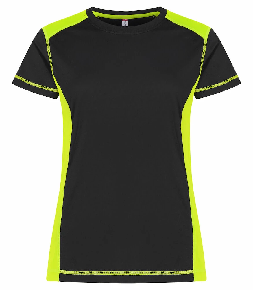 Kontrasti T-paita lisää näkyvyyttä! Paita on osittain valmistettu kierrätetystä polyesterista. Kontrastiompeleet ja kaulus joustinneuleesta. Vahvistettu niskanauha ja helposti irrotettava niskalappu, joten se voidaan tarvittaessa vaihtaa.