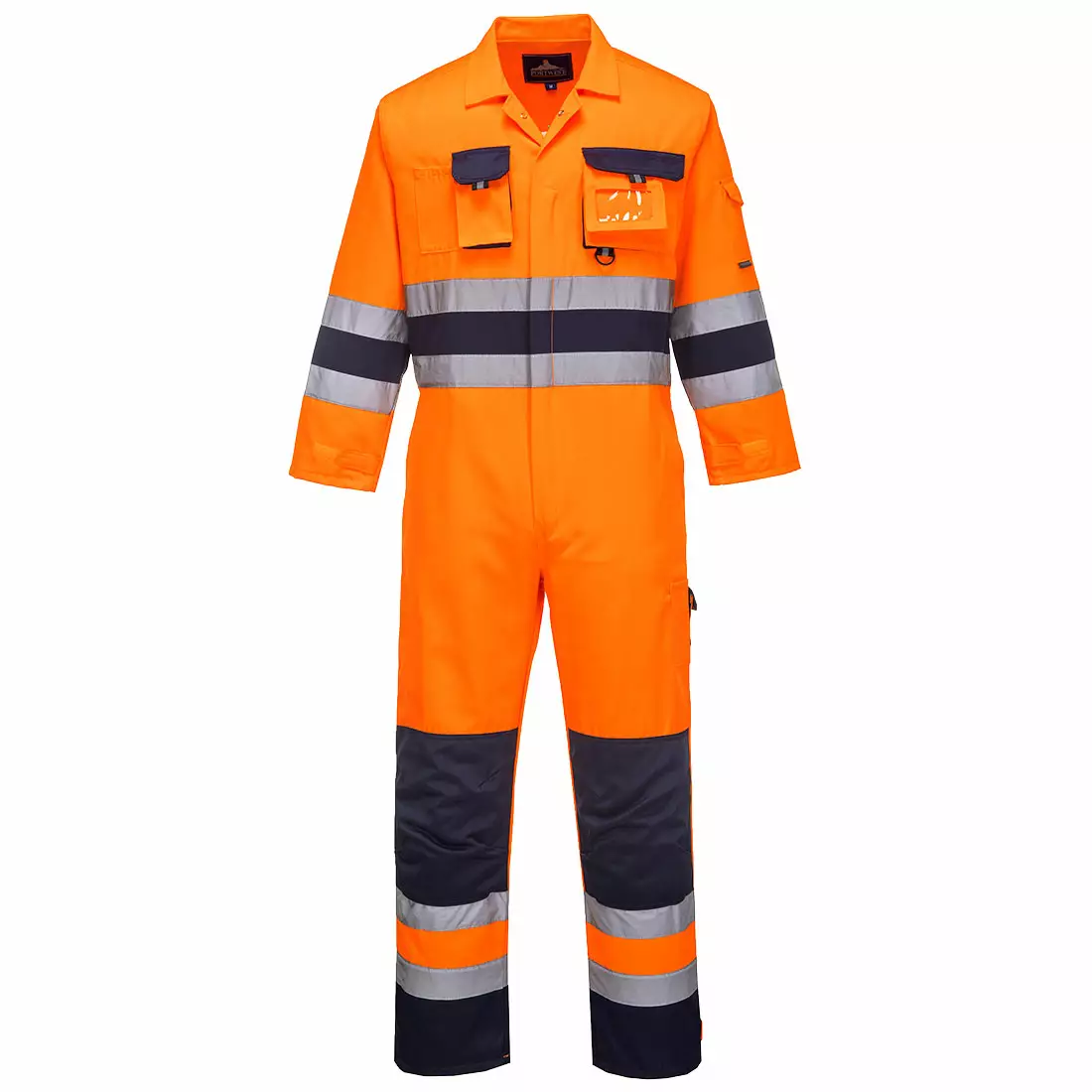 Näkyvä haalari, joka on suunniteltu työskentelyyn vilkkaan liikenteen läheisyydessä. Monipuoliset yksityiskohdat, kuten polvisuojataskut ja joustava selusta helpottavat hankalissa työasennoissa työskentelyä.