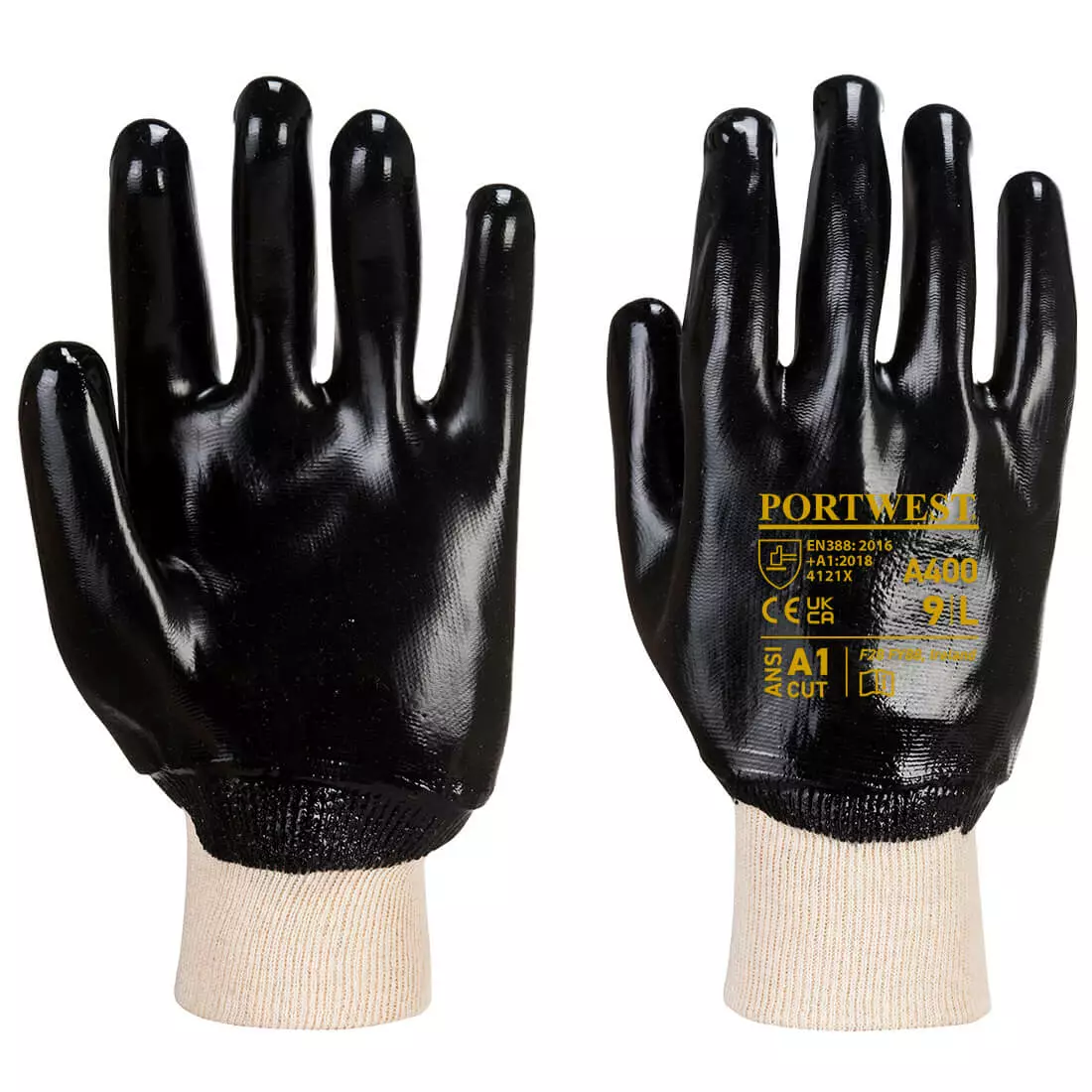 PVC-handskar har en stickad manschett, en bomullsinsida och en mjuk beläggning som står emot slitage. Handskarnas mjuka, släta yta garanterar högsta slitagemotstånd. Helt dippad PVC-beläggning skyddar väl mot vatten och olja.