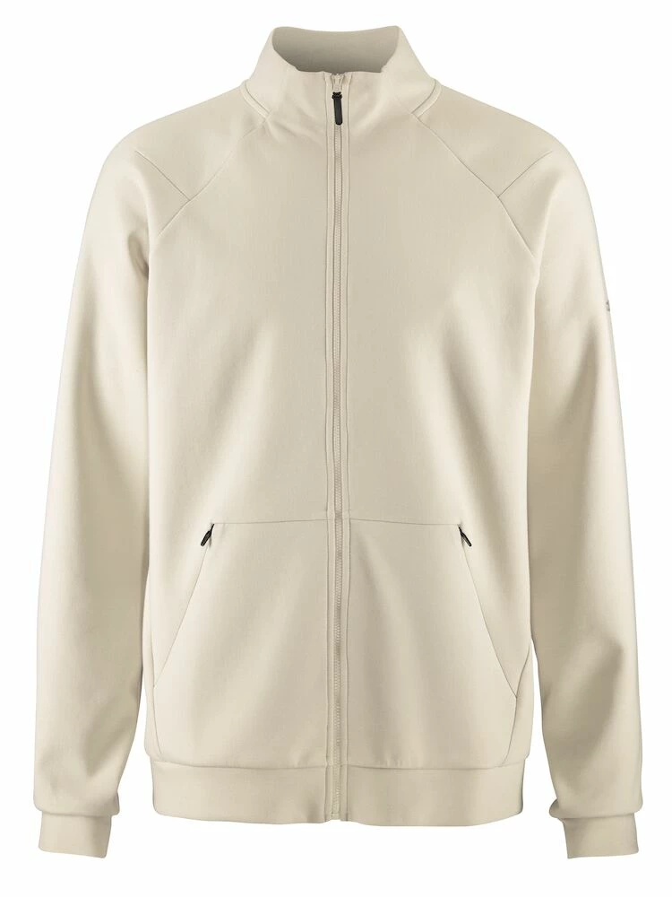 Den moderna helzip-jackan är tillverkad av högkvalitativt tyg, där utsidan är av slät bomull och insidan av mjuk polyester. Resultatet är ett mycket bekvämt plagg som ser bra ut både på väg till och från gymmet samt i avslappnade vardagssituationer. Jackan har en nordisk stil med en avskalad look och passar lätt ihop med många sport- och träningsplagg. Dessutom har jackan raglanärmar och fickor med dragkedjor för säker förvaring av saker. Det broderade logotypen lägger till jackans förstklassiga känsla och utseende.