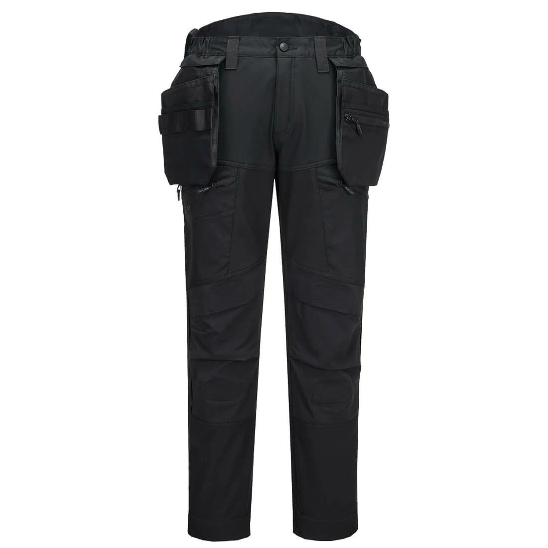 Tekniska DX4 byxor med avtagbara hängfickor är tillverkade av ett exceptionellt välventilerat, men också vatten- och flammskyddande ripstop-material. De ergonomiskt designade byxorna är utrustade med fyra väderstretchpaneler, vilket möjliggör fri rörlighet i olika arbetsställningar. Byxorna har en upphöjd och elastisk midja bak för att ge skydd i alla arbetspositioner. Förformade, uppifrån lastbara, justerbara knäskyddsfickor, rymliga framfickor och mångsidiga fickor med dragkedja på låren erbjuder en säker förvaringsplats för telefoner, pennor och verktyg. Tredubbel söm säkerställer maximal hållbarhet.