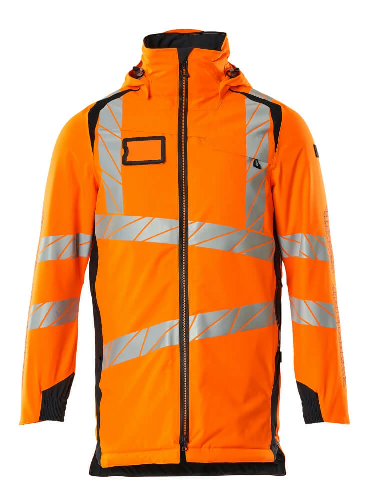 Fluorescerande, stående och snedställda reflexer. Mycket andningsbar samt vindtät och vattentät. CLIMASCOT® Lightweight Insulation. Tvåfärgad. Tätsydda sömmar. Avtagbar foderhuva med justerbar dragsko. Dragkedjestängning och dubbel vindskyddslist. Bröstfickor, två med dragkedja, en öppen, i nätmaterial. Avtagbar ID-kortsficka. Bröstficka med vattentät dragkedja. Framtidigheter, vattentäta dragkedjor. Hög krage. Inuti jackans nederdel finns resår framtill. Gummiband i ärmslutet. Dragkedja inuti nedre delen av ryggen för broderier/logotryck. Tryckmönster.