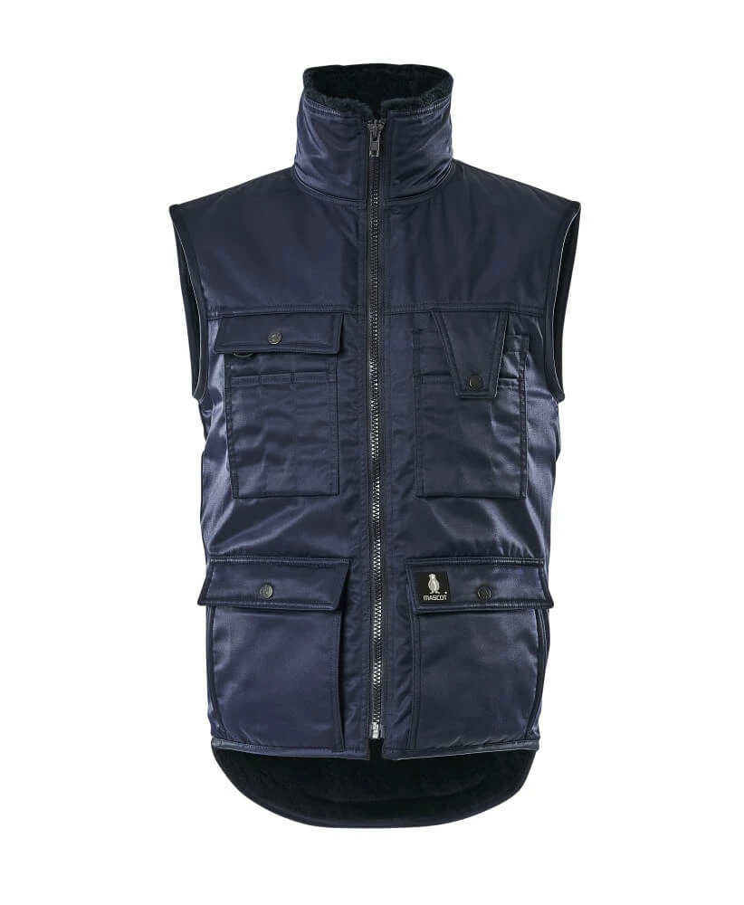 Vattentålig. Fleecefoder. Helt låsdragkedja. Bröstficka med lock. Mobilbröstficka med justerbart lock. Penningfickor. Framfickor, två öppna samt två med lock och tryckknappar. Innersfickor, en med dragkedja och en med kardborrefäste.