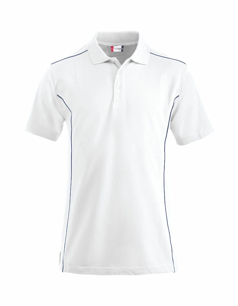 Pikétröja med kontrastfärgade detaljer och matchande knappar. Förstärkt nacke och slitsar i sidorna.