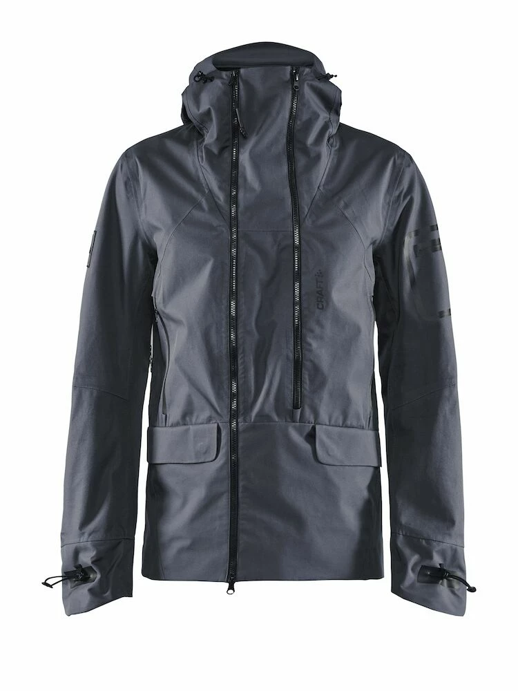 3-lagers skaljacka med tejpade sömmar. Ventilationsfunktioner under armarna, justerbar huva och bröstficka.