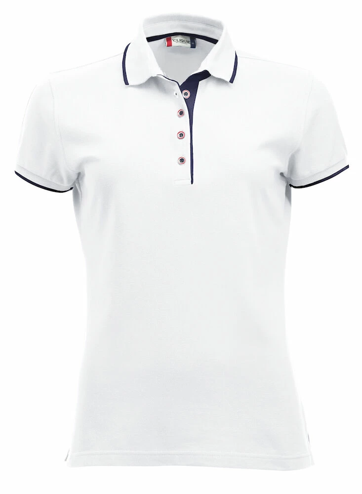 Dam pikétröja med kontrasterande knappar, nackband, knappslå och sidokilar. Speciellt förstärkt krage som förbättrar passform och användbarhet både uppfälld och nertill. Kontrasterande rand på kragens underdel och ärmslut.